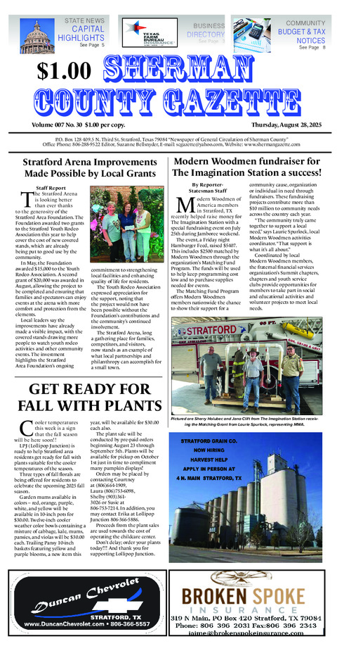 Mayor Greg Wright has announced that the City of Stratford and Sherman County Development...